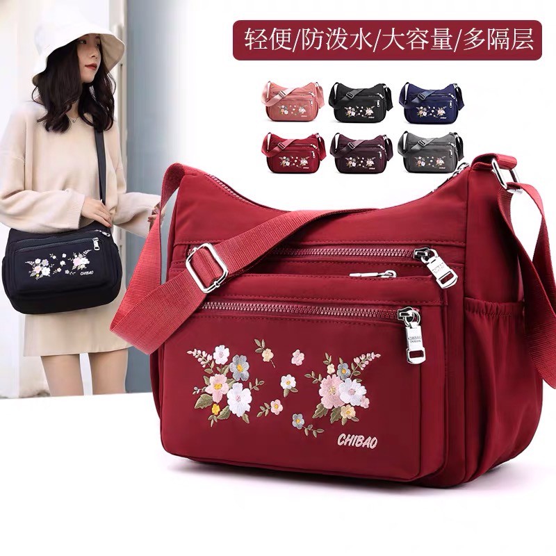 Tas Wanita Import Jinjing Selempang CHIBAO CB7133 7133 CB7133-11 7133-11 Bordir Bunga Bahan Parasut.