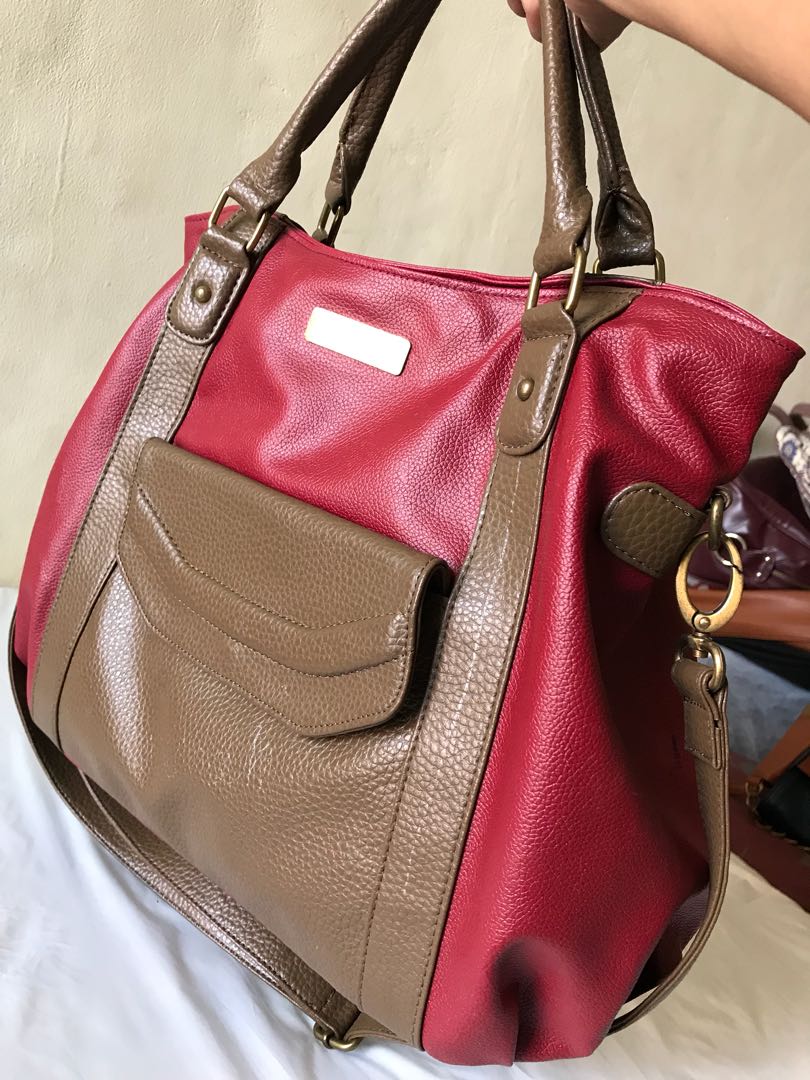 Tas Sophie Martin Merah Red Tote Bag Fesyen Wanita Tas Dompet Di Carousell