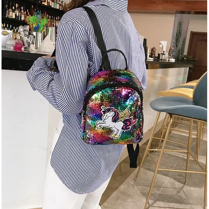 Jual Tas Ransel Import Mini Unicorn Sequin Bling Backpak Wanita Kuda Poni F405 Di Lapak Sekar Store Bukalapak
