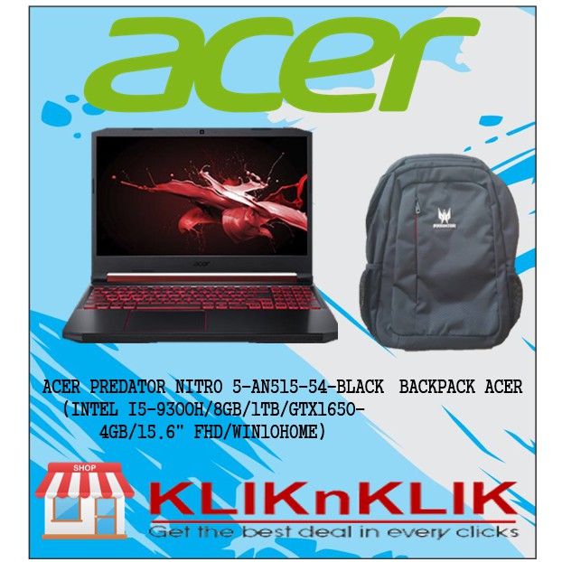 Laptop Gaming Murah Acer Predator Nitro 5 An515 54 9300h 8gb 1tb Gtx1650 Windows 10 Black Shopee Indonesia