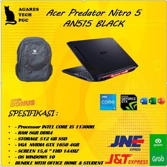Acer Nitro 5 An515 I5 11300 8gb 512ssd Gtx1650 4gb W10 Ohs 15 6fhd 144hz Blk 56 5603 Blg Shopee Indonesia