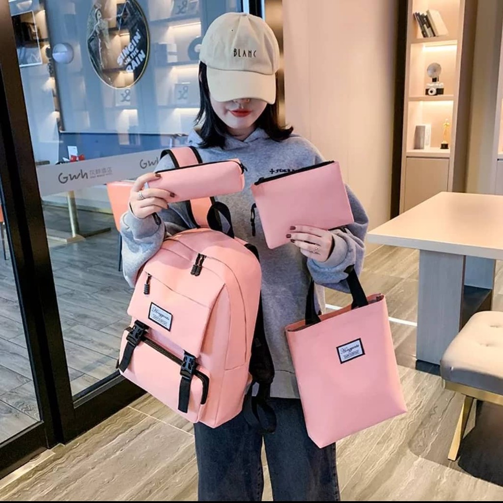 Tas Sekolah Gadis Set 4 Pcs Ransel Bahu Paket Kampus Tas Siswa Pink Hitam Abu 2020 Lazada Indonesia